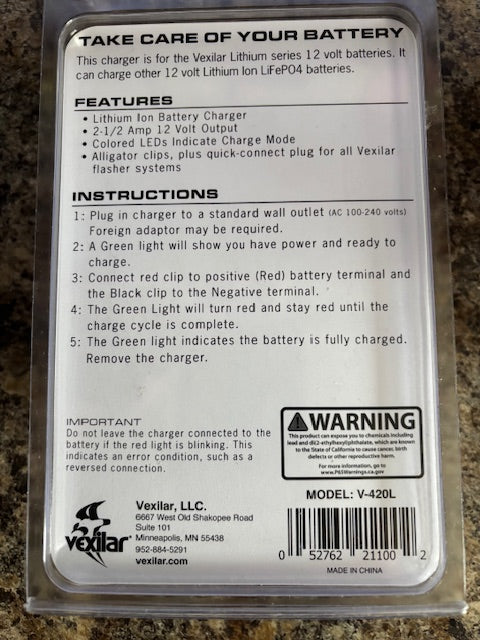 Vexilar V-420L Rapid 2.5amp 12v Charger For Lithium Batteries